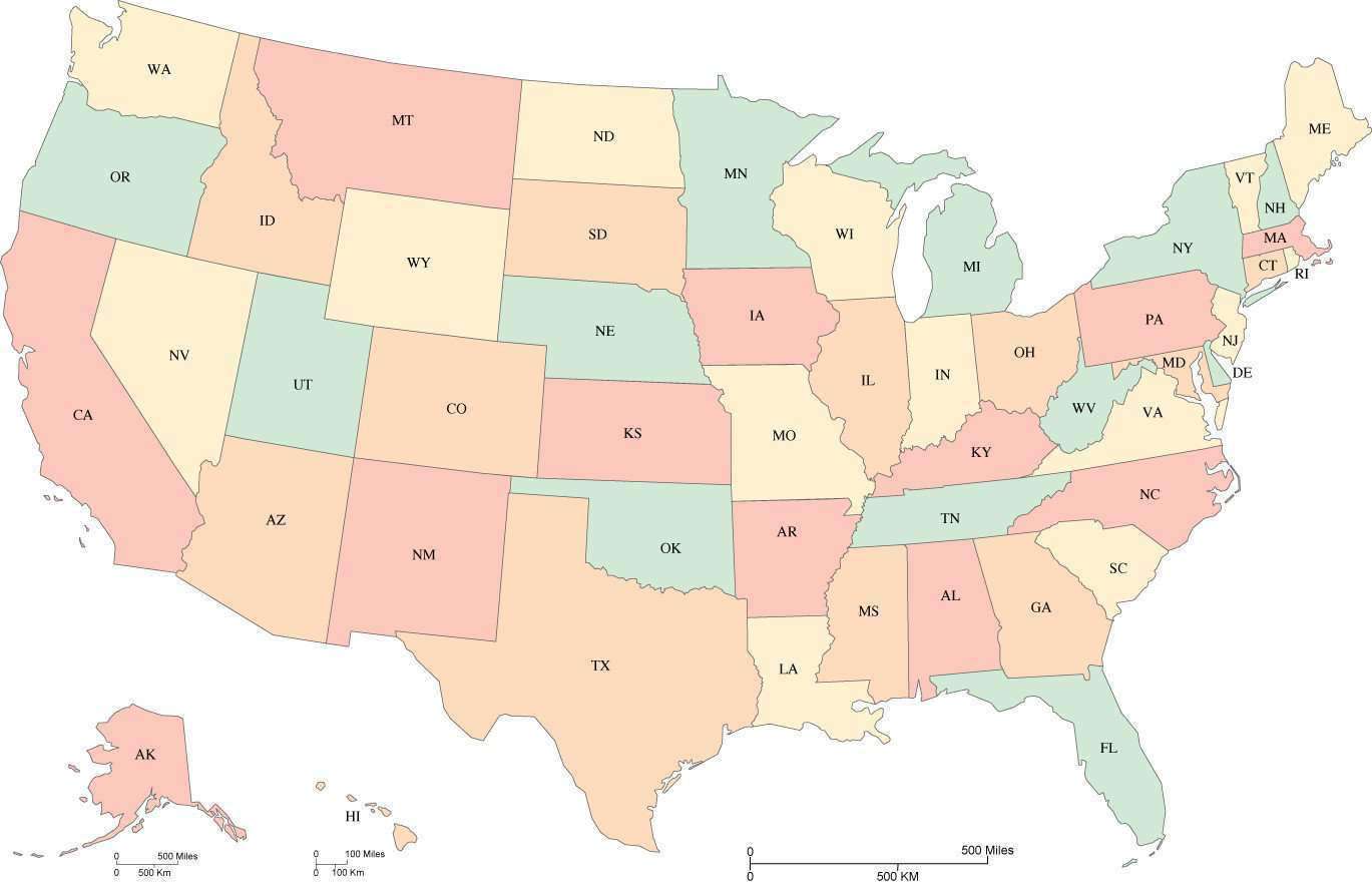 USA Map – Full Color with State Names KidsPressMagazine.com